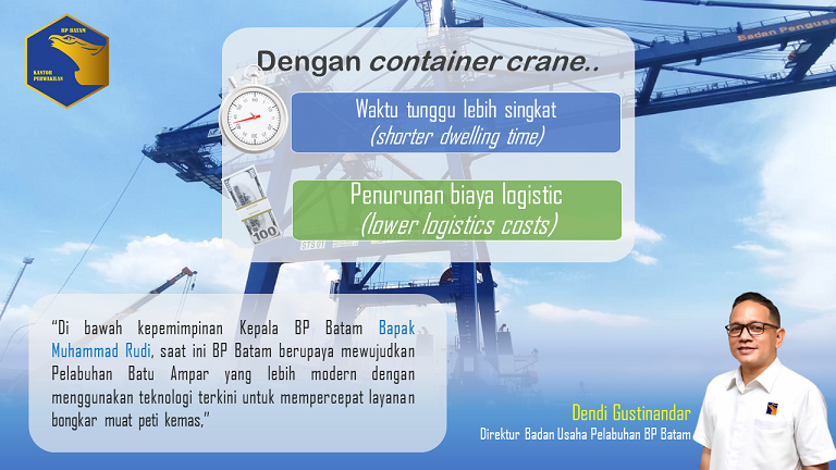 “Di bawah kepemimpinan Kepala BP Batam Bapak Muhammad Rudi, saat ini, BP Batam berupaya mewujudkan Pelabuhan Batu Ampar yang lebih modern dengan menggunakan teknologi terkini untuk mempercepat layanan bongkar muat peti kemas,” imbuh Dendi.